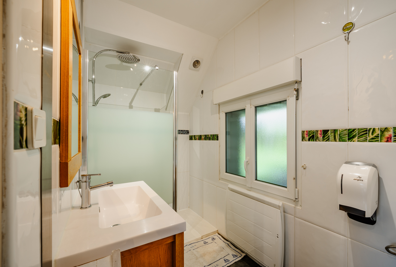 2 salles de bain : une avec BAIGNOIRE au rez-de-chaussée et une avec douche à l’étage.
